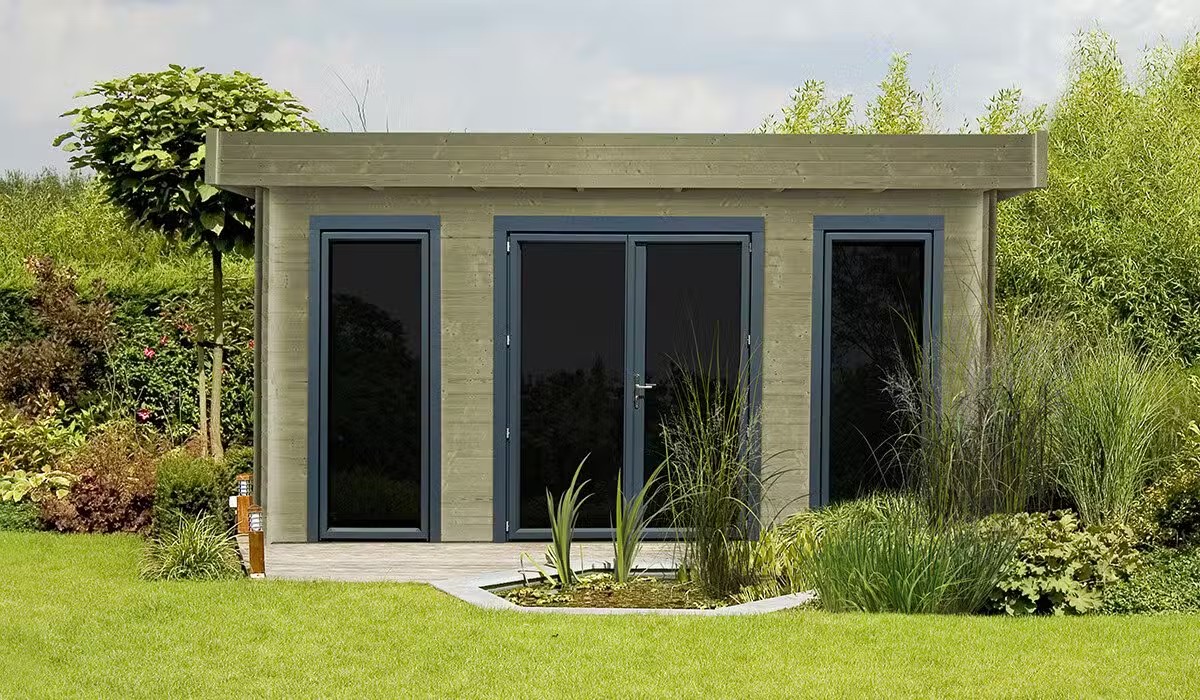 Dimensions au sol : 4,78 x 3,88 m | Surface au sol : 18,54 m² | Hauteur de faitage : 2,48 m | Profilés à emboiter en bois d’épicéa naturel, épaisseur 40 mm | Double porte en aluminium 1,61 x 2,06 m avec fenêtre double vitrage et joints d’isolation | Accès facile avec un seuil de porte en aluminium | Poignée de porte en inox et serrure à cylindre | Deux fenêtres 0,81 x 2,61 m avec double vitrage | Revêtement de toiture en EPDM | Gouttières en acier galvanisé avec conduits d’évacuation | Poutre de contour au sol 34 mm, imprégnée autoclave | Kit anti-tempête métallique