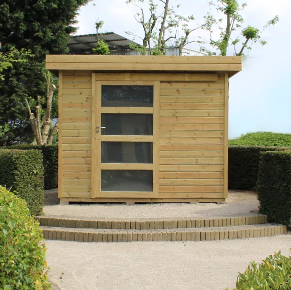 Offrez à votre jardin un espace fonctionnel et esthétique avec l’abri Vintage. Facile et rapide à monter, cet abri en panneaux modulaires se distingue par son design épuré et sa praticité. Son toit plat en EPDM ou tôle d’acier anthracite apporte une touche moderne, tandis que la porte coulissante optimise l’espace disponible.