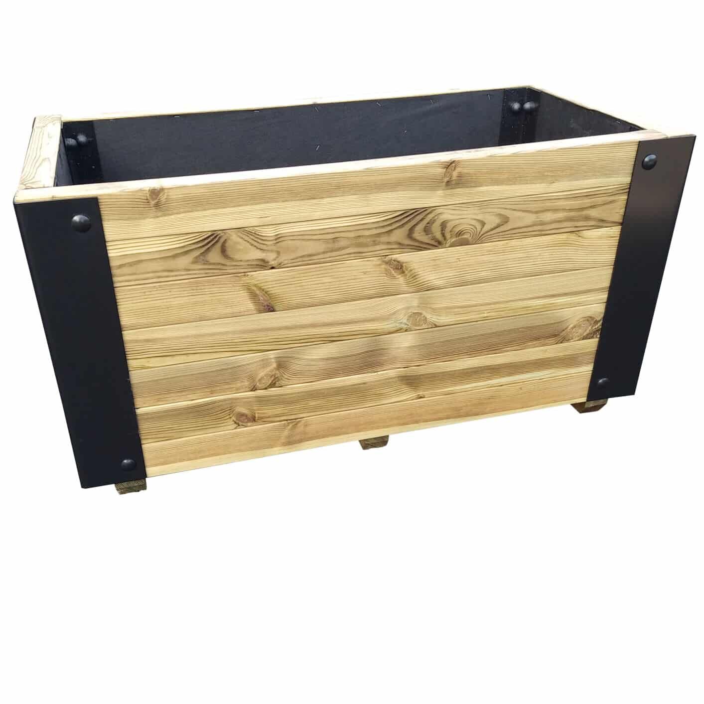 Notre gamme de bacs Windsor est en pin traité classe 3. Ils sont design et robustes. Nos bacs sont prêts à l’emploi et contiennent une réserve de substrat suffisante pour l’épanouissement des végétaux. Les cornières de nos bacs Windsor sont en acier noir. La toile intérieure est également noire.