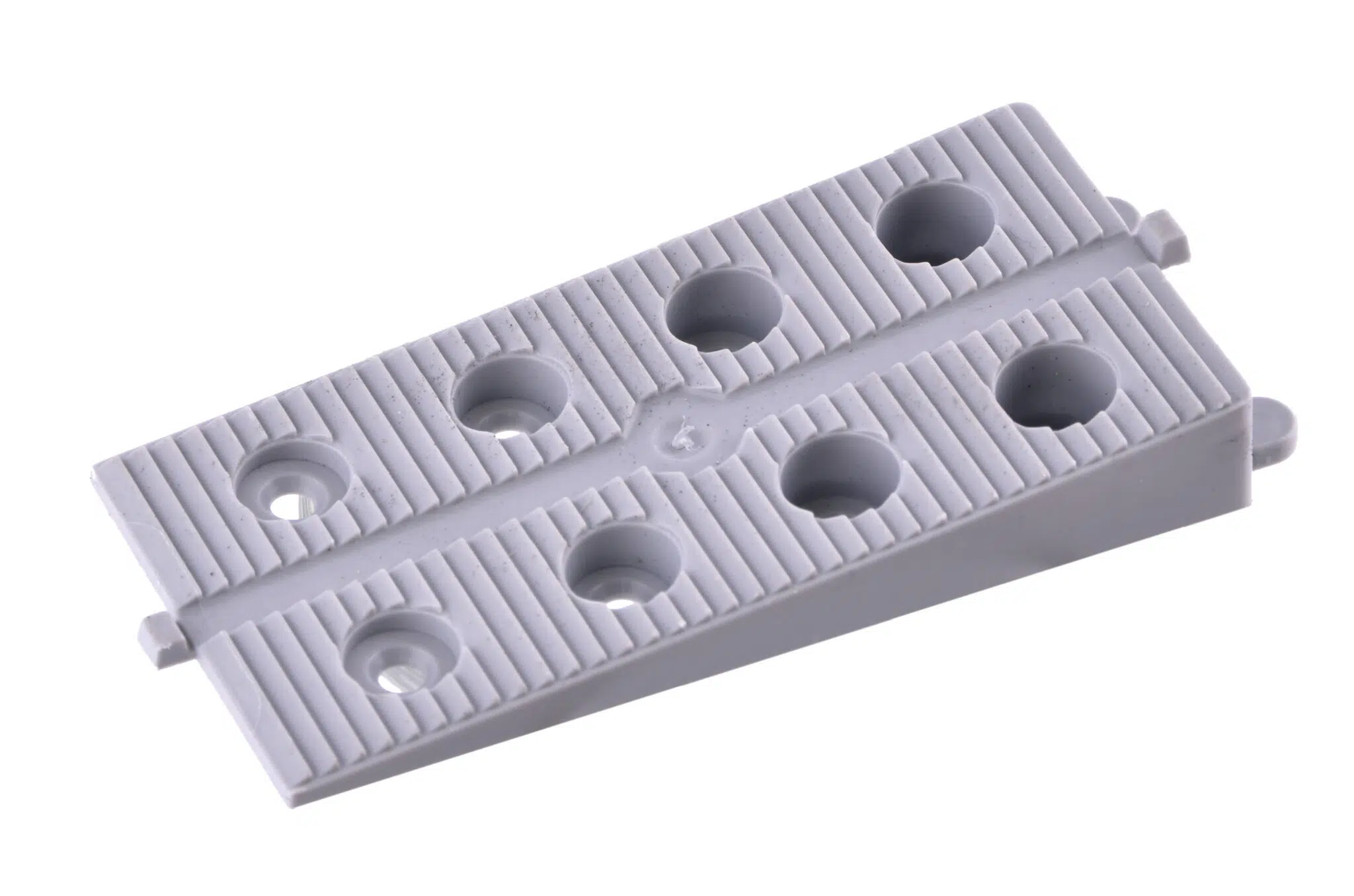 Les cales crantées PVC assurent un calage précis et durable de votre terrasse, sans risque de pourrissement.