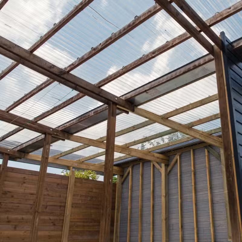 En bac acier ou polycarbonate ou en membrane PVC, Finition avec un bandeau périphérique en bois ou métal, Mono-pente ou double pente