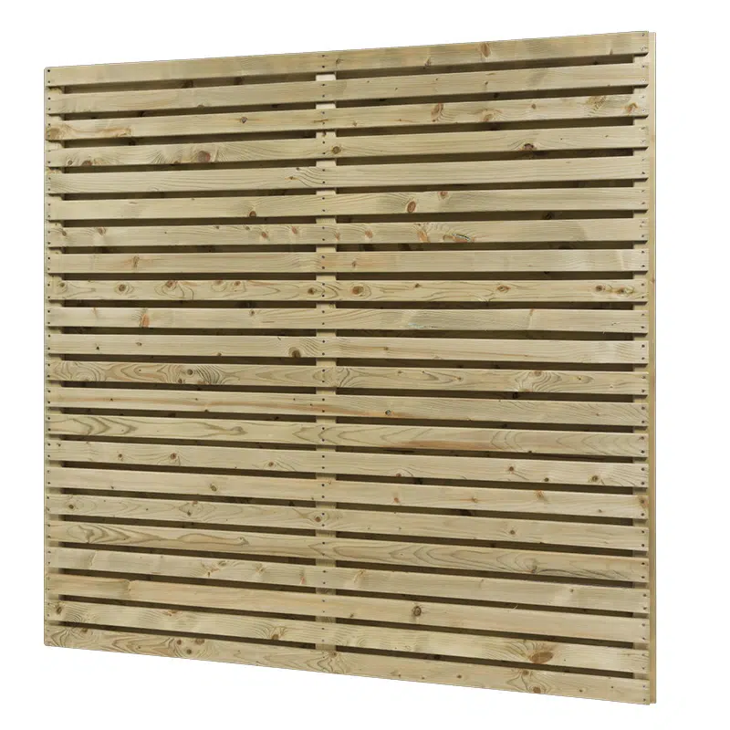 Fabriqué en pin sylvestre traité autoclave classe III, le panneau Chelsea allie esthétisme et intimité. Ses lames disposées en quinconce offrent une occultation efficace tout en restant identique des deux côtés pour un rendu harmonieux. Sans cadre, il est assemblé à l’aide de vis inox et renforcé par trois traverses verticales. Les angles droits apportent une finition sobre et contemporaine.