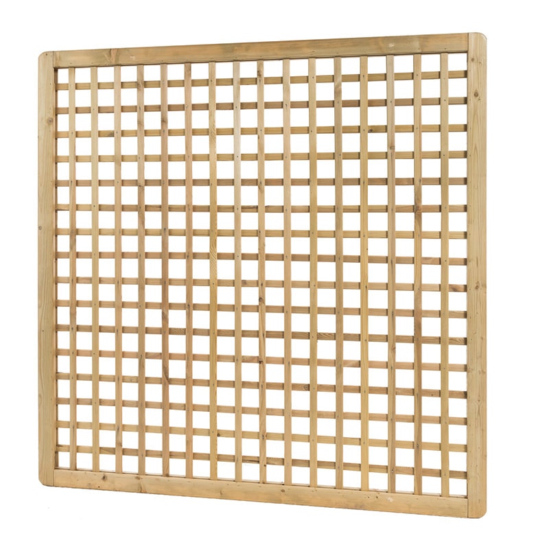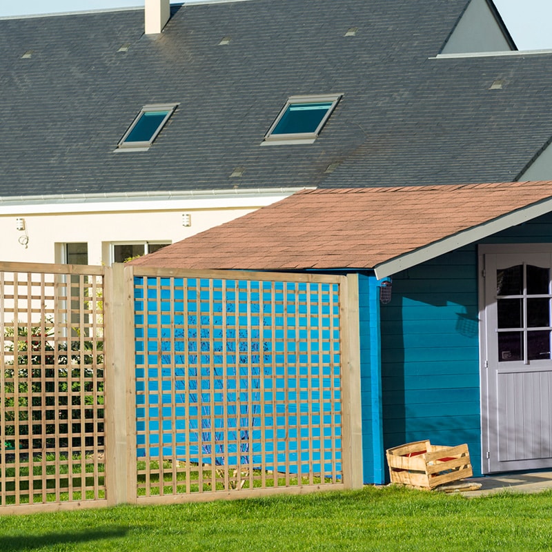 Le panneau Karo, au style treillis, est en pin traité autoclave, classe III. Esthétique et idéal pour les plantes grimpantes, il s’intègre parfaitement dans votre jardin. Identique des deux côtés, il est doté d’un treillage carré de 70 x 70 mm.