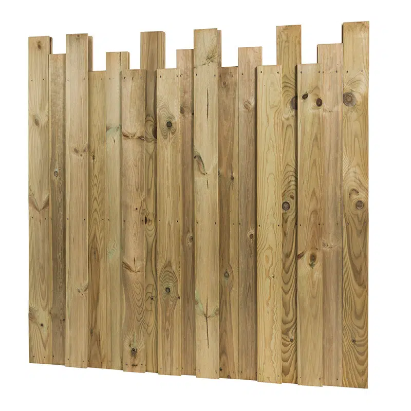 Le panneau Mustang, au style massif occultant déstructuré, est fabriqué en pin traité autoclave classe III. Entièrement occultant, il allie modernité et design pour s’intégrer parfaitement dans votre jardin. Ce panneau est réversible grâce à ses lames rabotées et juxtaposées, avec une coupe biseautée sur le dessus. Sans cadre, il est assemblé avec des vis en acier inoxydable.