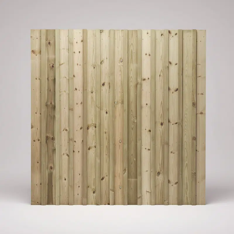 Panneau occultant en pin traité autoclave, plein à recouvrement et sans cadre, idéal pour créer une clôture durable au rendu moderne et soigné.