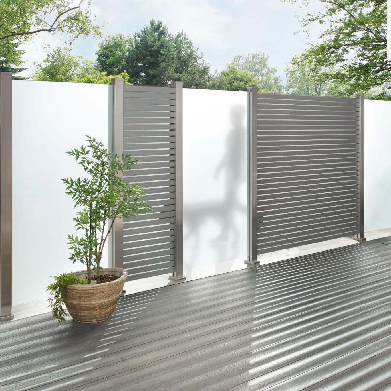 Vous pouvez avec SYSTEM, intégrer des lames et grilles décoratives en acier inoxydable, en verre ou une baguette lumineuse. Les matières sont durables et faciles d’entretien. Vous pourrez également assortir vos portes et portails à votre clôture avec notre version sur-mesure.