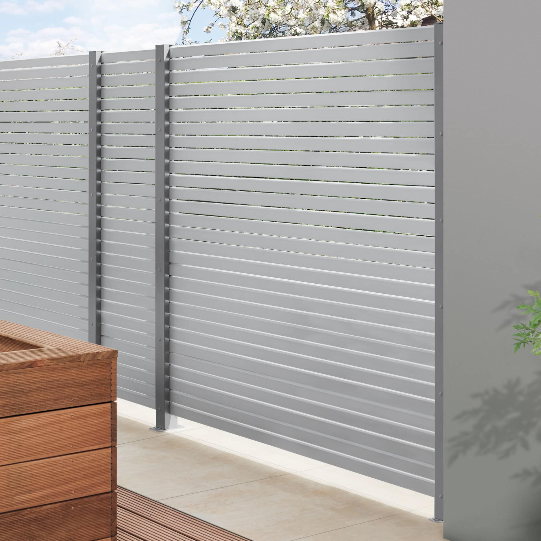 - Des poteaux en aluminium anthracites ou argentés à sceller ou avec platine