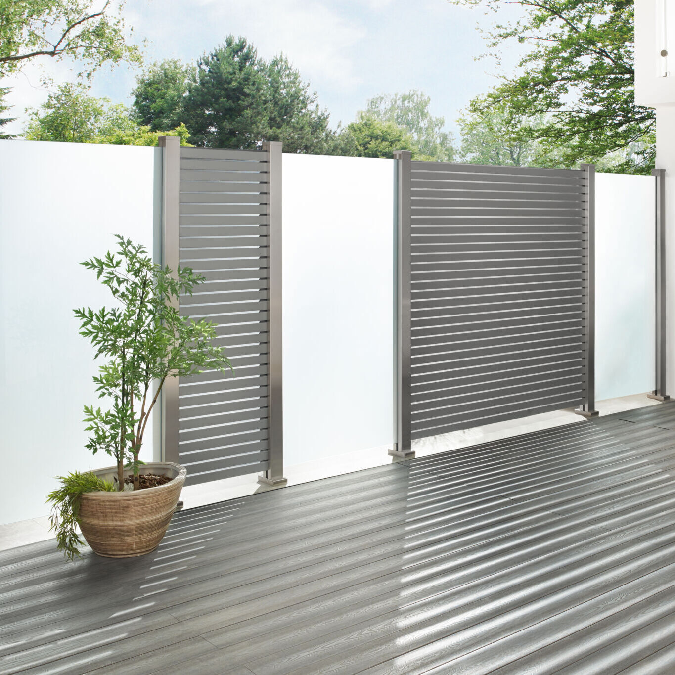 La gamme SYSTEM Verre, c’est choisir une clôture protégée à la carte et originale. Les panneaux SYSTEM offrent une grande variété de configurations. Cette série modulable permet de varier à souhait la hauteur et la largeur des panneaux.