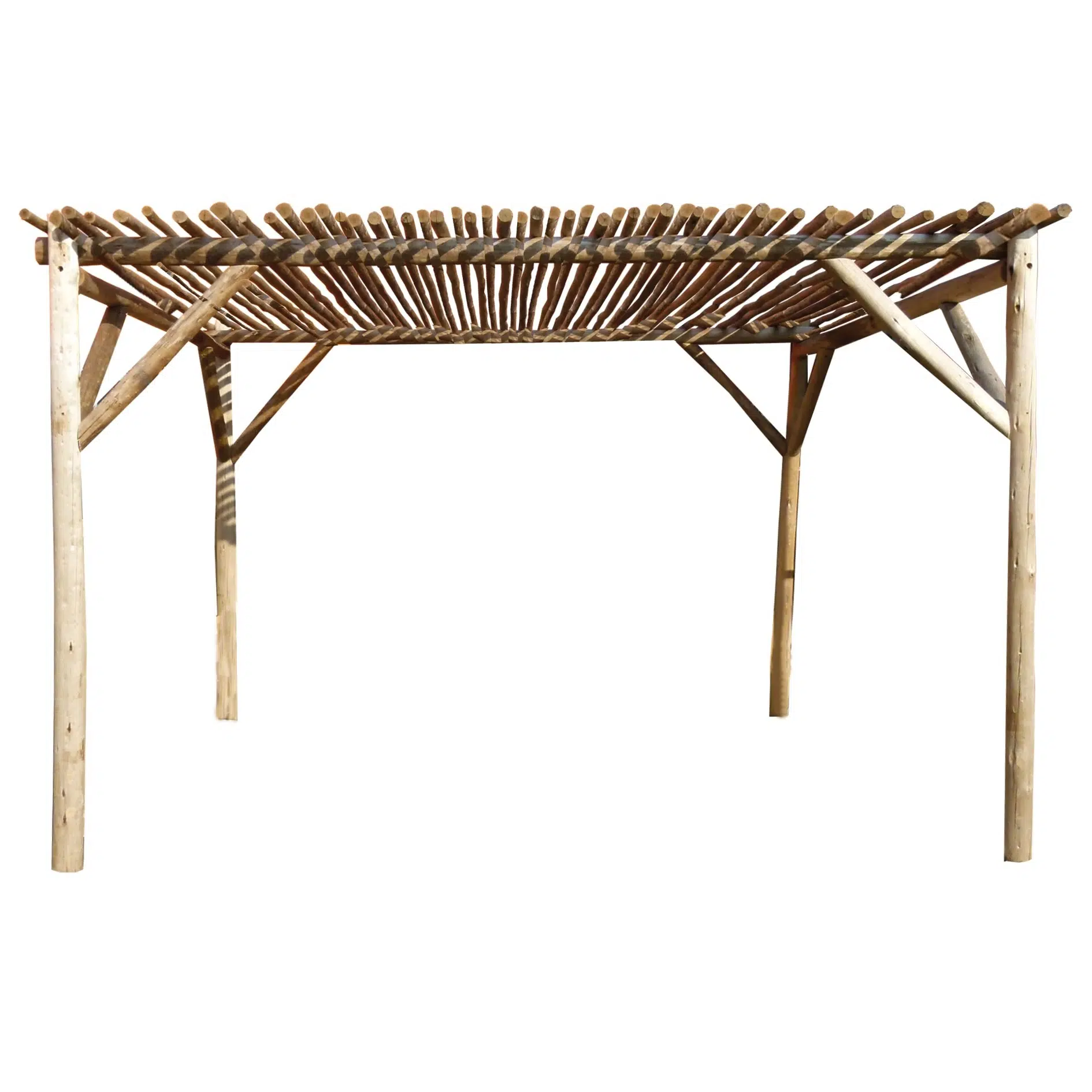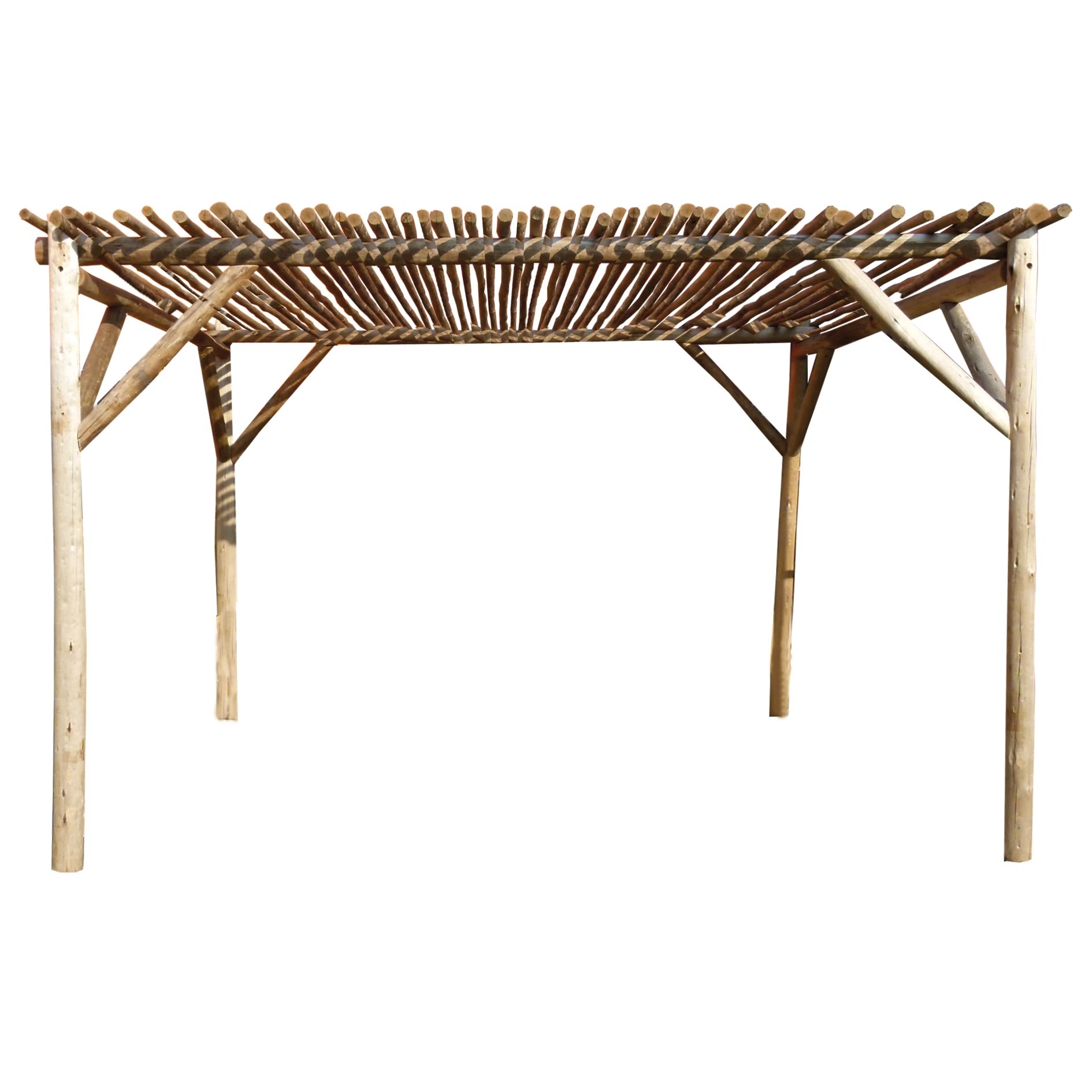 Cette pergola est disponible en rondins d’eucalyptus avec une couverture ajourées ou serrées.