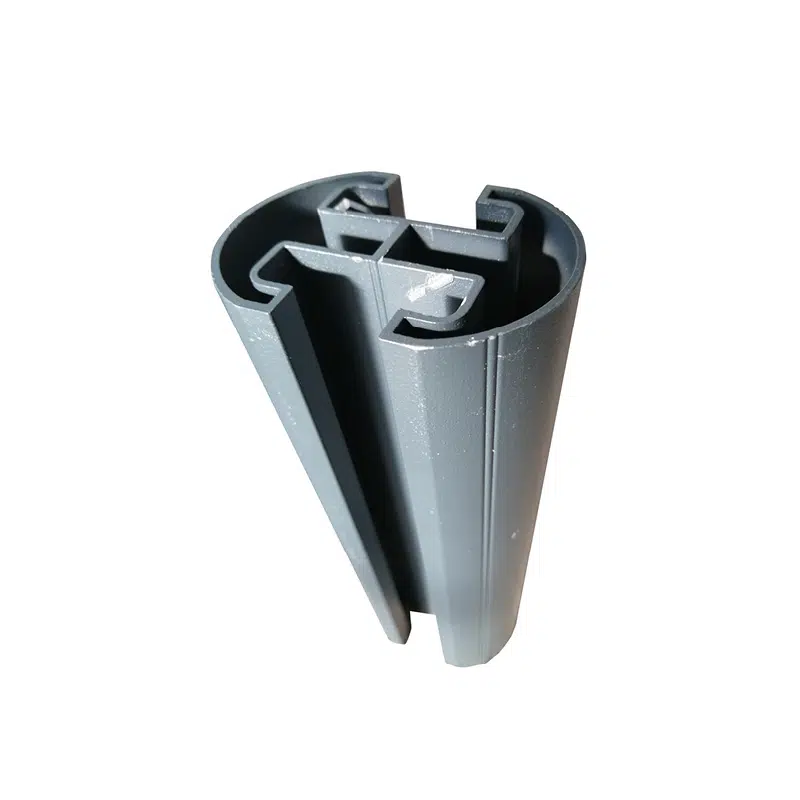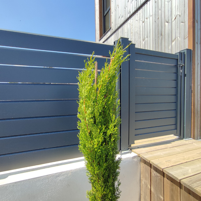 Poteau en aluminium thermolaqué texturé, discret et esthétique, idéal pour la pose de clôtures en bois, composite ou aluminium.