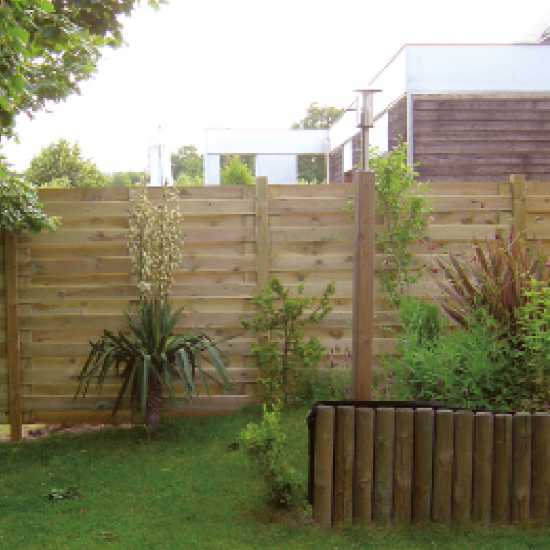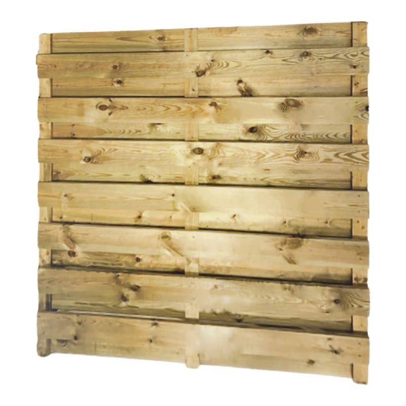 Le panneau Robusto, de style occultant, est fabriqué en pin traité autoclave de classe III. Composé de planches lisses, il peut être installé à la verticale ou à l’horizontale selon vos préférences. Robuste et élégant, il s’intègre parfaitement à votre jardin. Sans cadre, ce panneau est identique des deux côtés et fixé avec des vis en inox.