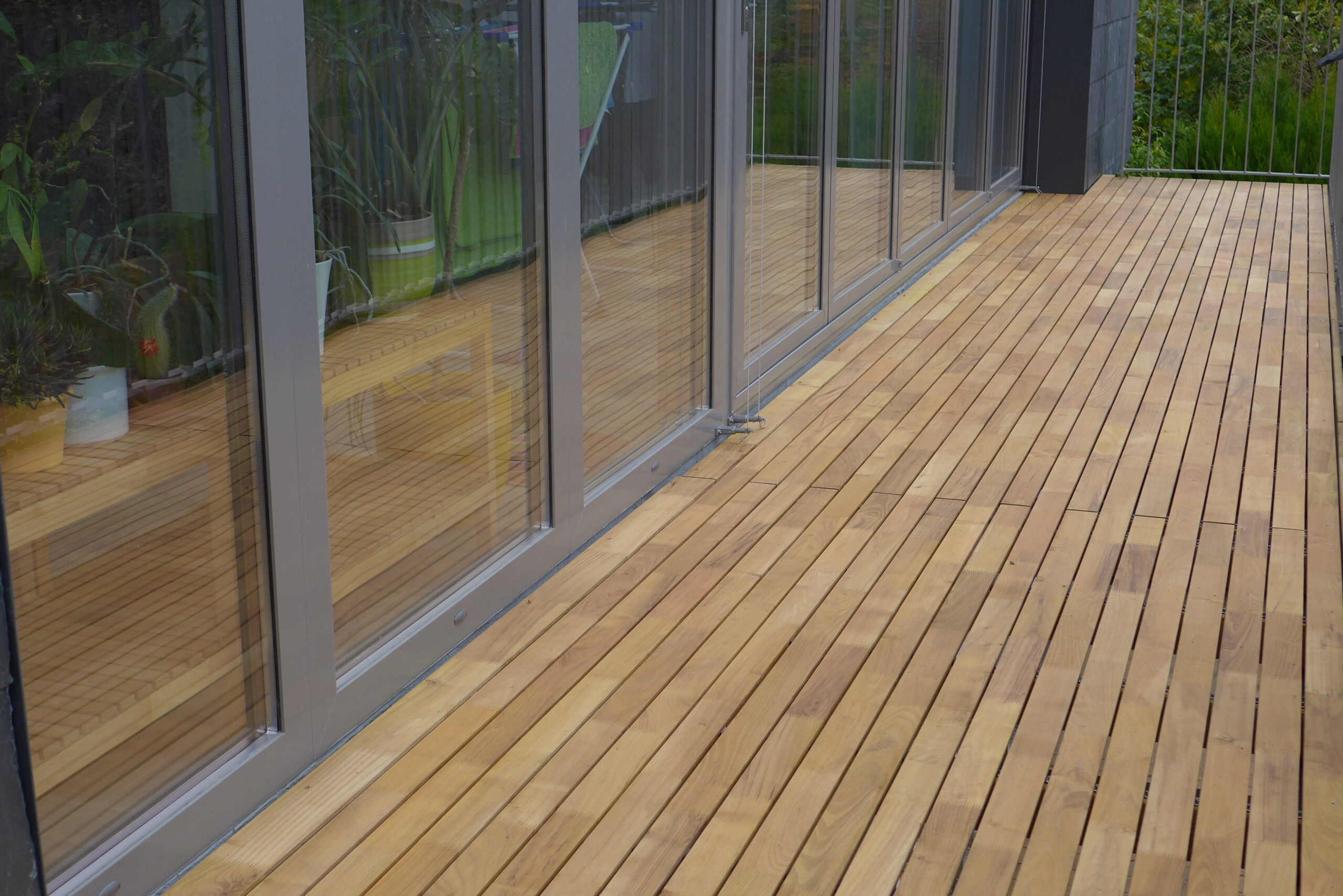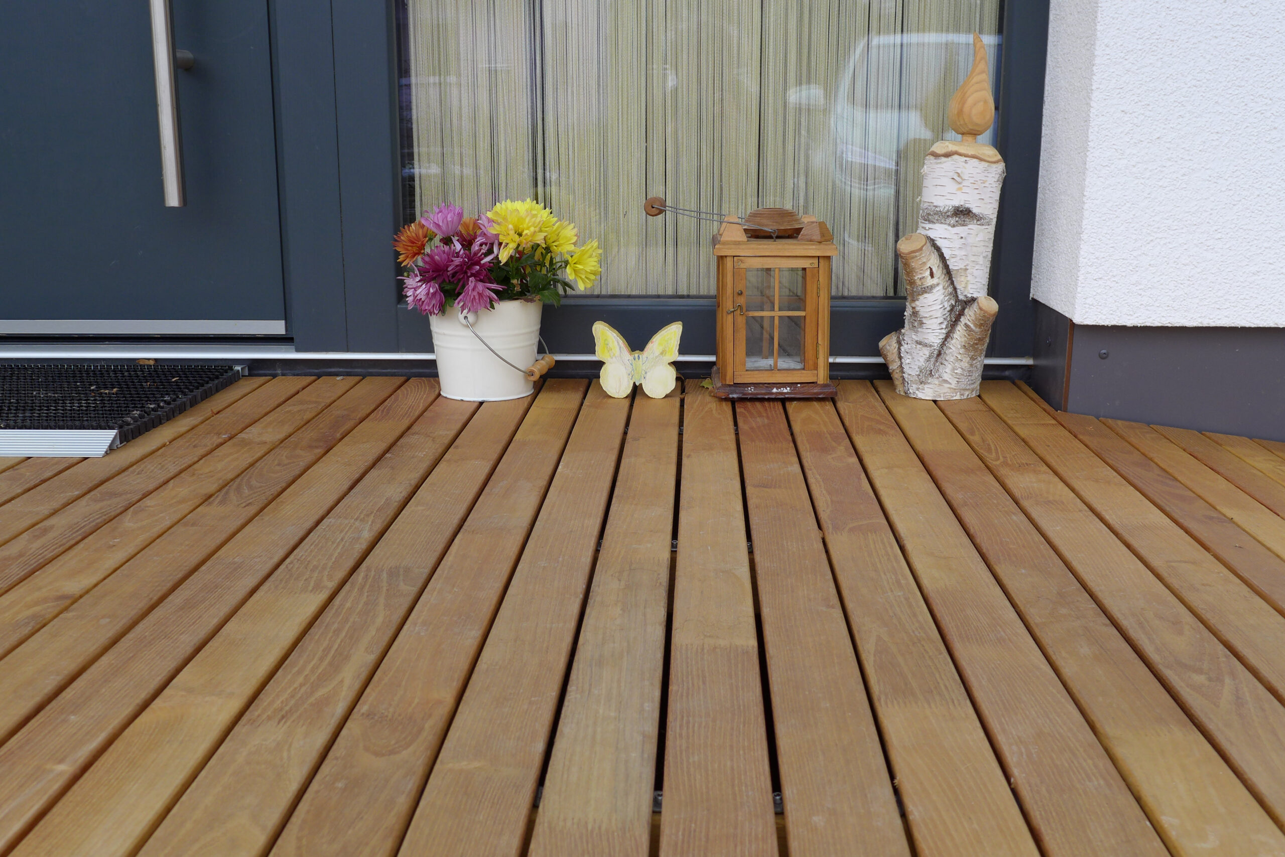Entretien : un nettoyage une à deux fois par an avec un balai-brosse et de l’eau savonneuse suffit. Ne jamais nettoyer une terrasse en pin avec un jet haute pression. Cela pourrait altérer la surface du bois.