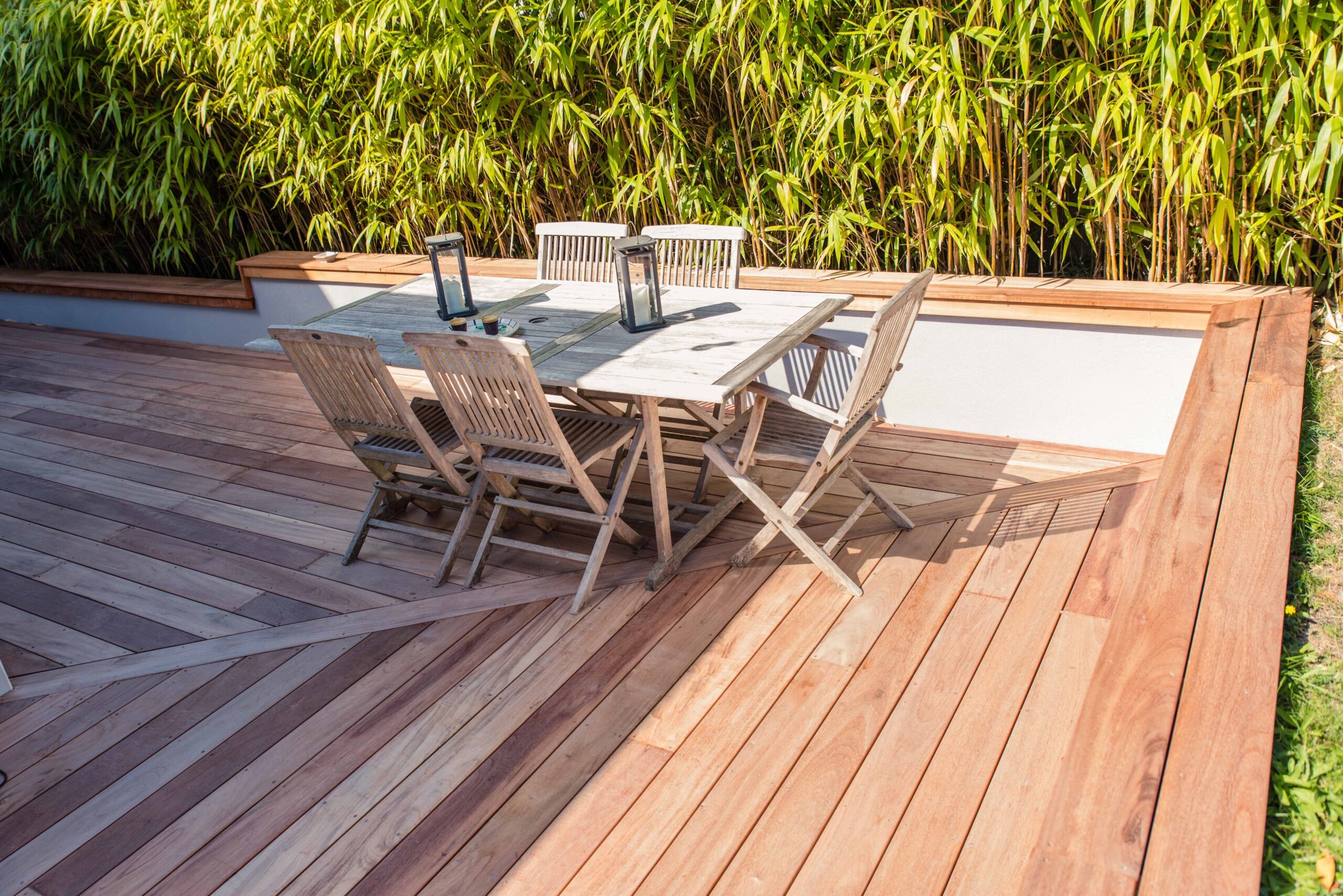 Le bois muiracatiara se distingue par son esthétique unique qui évoque les rayures du tigre. Il apporte du caractère à votre terrasse et devient un véritable élément de décoration. Son grain fin et sa couleur orangée créent une atmosphère chaleureuse et élégante.
