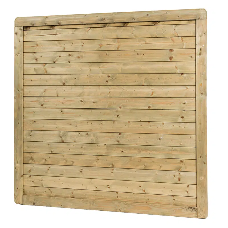 Le panneau Vitoria, à l’aspect massif et occultant, est conçu en pin traité autoclave classe III pour garantir robustesse et durabilité. Esthétique et solide, il s’intègre harmonieusement dans tout aménagement extérieur. Son cadre en pin sylvestre accueille des lames intérieures également traitées, assemblées par tenons et mortaises pour une finition soignée. Les angles arrondis apportent une touche de douceur au design. Une version à lames verticales est également disponible.