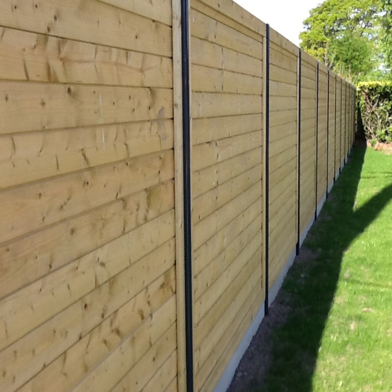 Ce panneau peut être installé avec des poteaux en bois traité, en aluminium ou en béton selon l’esthétique souhaitée et le niveau de durabilité recherché.