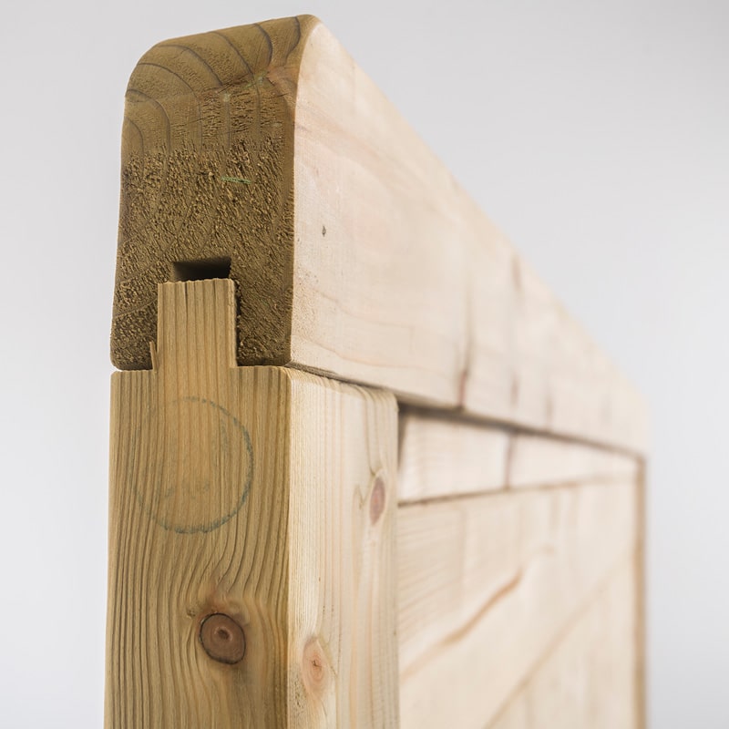Le panneau Vitoria, à l’aspect massif et occultant, est conçu en pin traité autoclave classe III pour garantir robustesse et durabilité. Esthétique et solide, il s’intègre harmonieusement dans tout aménagement extérieur. Son cadre en pin sylvestre accueille des lames intérieures également traitées, assemblées par tenons et mortaises pour une finition soignée. Les angles arrondis apportent une touche de douceur au design. Une version à lames verticales est également disponible.
